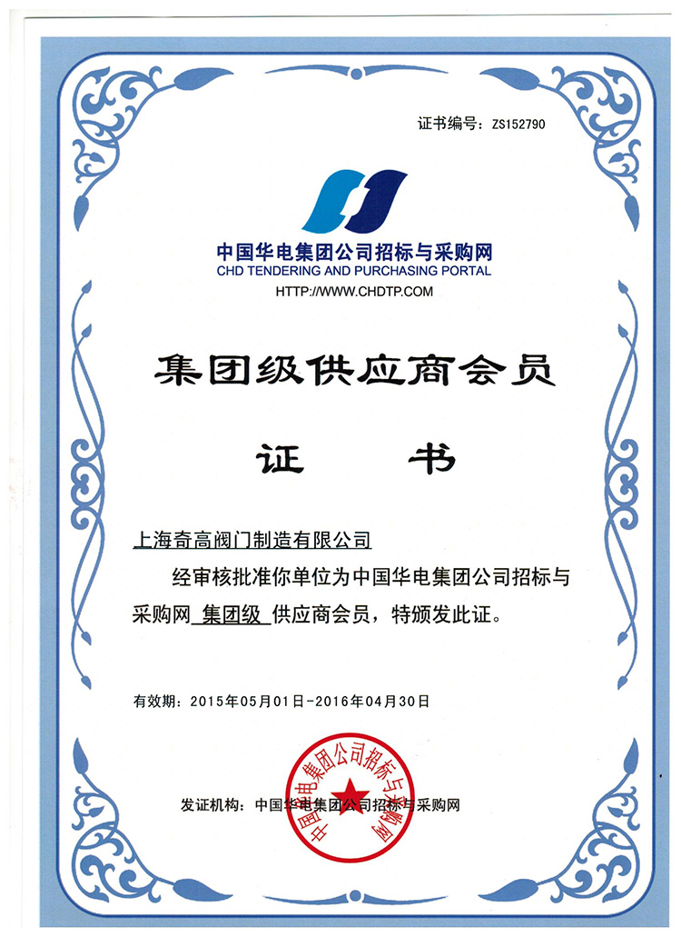 2019-12-18 關(guān)注次數(shù):2015年5月1日,上海奇高閥門制造有限公司(http://www.cqzhengchun.com)經(jīng)過中國(guó)華電集團(tuán)公司招標(biāo)與采購(gòu)網(wǎng)的嚴(yán)謹(jǐn)?shù)膶徍?,以過硬的資質(zhì)力量獲得了中國(guó)華電集團(tuán)公司招標(biāo)與采購(gòu)網(wǎng)的集團(tuán)級(jí)供應(yīng)商會(huì)員證書。特此祝賀。經(jīng)過中國(guó)華電集團(tuán)公司招標(biāo)與采購(gòu)網(wǎng)的嚴(yán)謹(jǐn)?shù)膶徍耍赃^硬的資質(zhì)力量獲得了中國(guó)華電集團(tuán)公司招標(biāo)與采購(gòu)網(wǎng)的集團(tuán)級(jí)供應(yīng)商會(huì)員證書。特此祝賀。經(jīng)過中國(guó)華電集團(tuán)公司招標(biāo)與采購(gòu)網(wǎng)的嚴(yán)謹(jǐn)?shù)膶徍?,以過硬的資質(zhì)力量獲得了中國(guó)華電集團(tuán)公司招標(biāo)與采購(gòu)網(wǎng)的集團(tuán)級(jí)供應(yīng)商會(huì)員證書。特此祝賀。