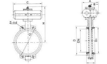 氣動(dòng)對(duì)夾式軟密封蝶閥 外形尺寸