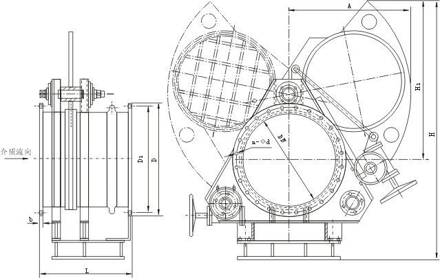 F343CX蝸輪扇形眼鏡閥又稱蝸輪扇形盲板閥,蝸輪翻板閥,蝸輪扇形閥,由左閥體、中閥體、右閥體、扇形盲板、絲桿螺母、不銹鋼補(bǔ)償器、兩個(gè)蝸輪傳動(dòng)機(jī)構(gòu)等組成。它是通過三根絲桿連成一體,并把三個(gè)閥體分別固定在底座上,構(gòu)成一個(gè)剛性結(jié)構(gòu)體。中閥體與右閥體用不銹鋼膨脹管連接,左、中閥體分別用三根兩端帶左右梯形螺紋的絲桿連接,將三根絲桿同時(shí)作正向(或反向)旋轉(zhuǎn),則左、中兩閥體得到壓緊(或分離)。三根絲桿中上面一根絲杠中間裝有盲板,盲板繞該軸心旋轉(zhuǎn)。下面兩根絲桿在同樣的部位上安裝有盲板的定位塊,盲板旋轉(zhuǎn)時(shí)可以防止盲板漂移,避免密封圈擦傷,其中一根絲桿上裝有蝸輪傳動(dòng)機(jī)構(gòu),實(shí)現(xiàn)松開夾緊閥體的目的。