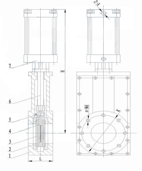 當氣缸通過閥桿帶動閘板下行時,閘板與閥體密封面吻合,將通道切斷,即為關(guān)閉;反之則為開啟。